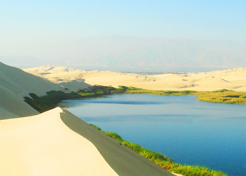 Mientras Huacachina es visitada por miles de turistas cada día, la belleza inigualable de la laguna u oasis de Morón se esconde solitaria a 20 kilómetros de Pisco. El lugar está rodeado de dunas, vegetación, y aves de distintos tipos.