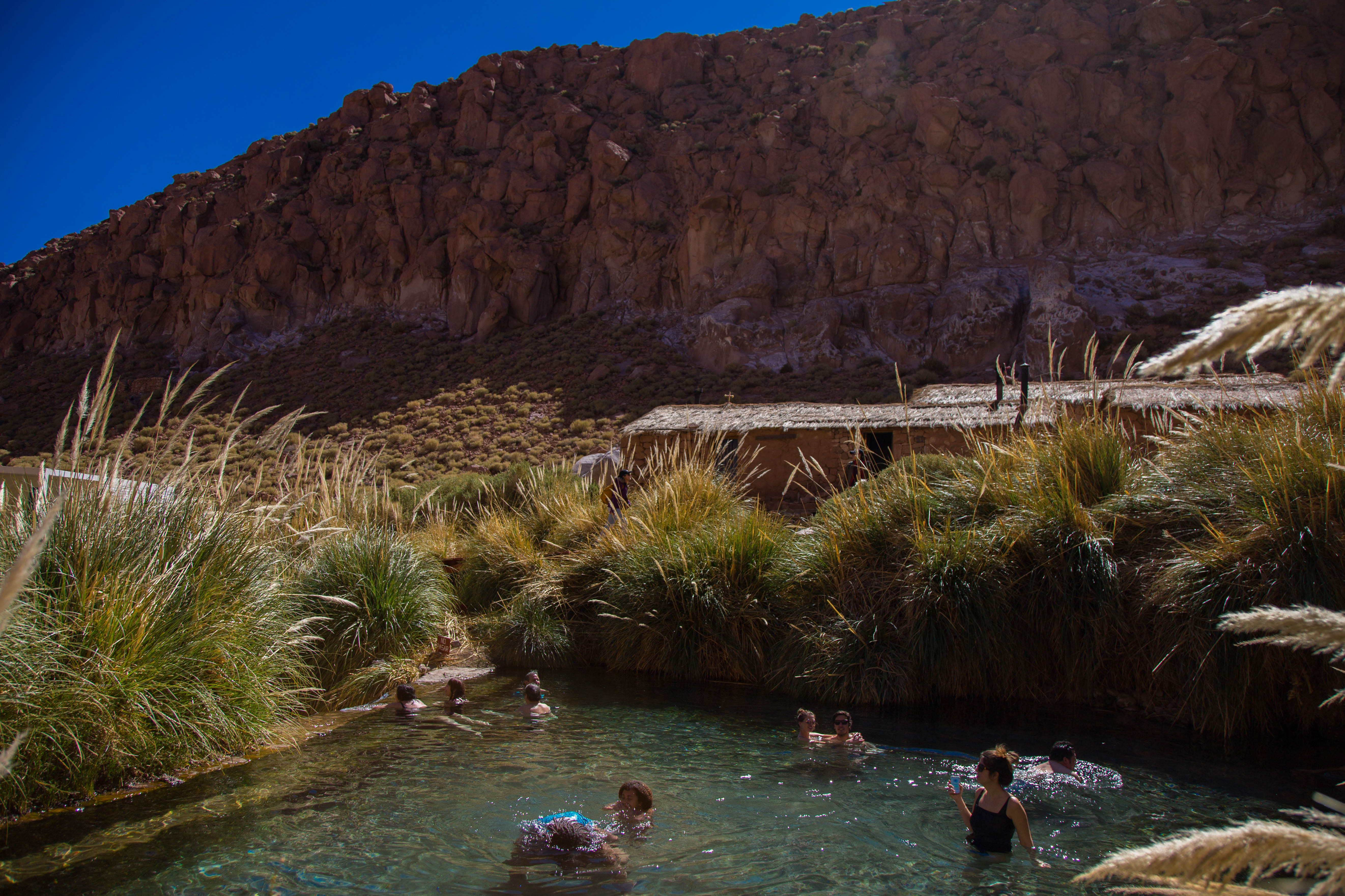 We will pick you up to leave the city towards the Purtiama Hot Springs, thermal water wells in the middle of a canyon. The temperature of the pools' water vary between 32 and 34°C, and it is said that has medicinal properties. In addition, we will see the variation of colors in the desert landscape, while we rest with the thermal bath. During the time we will spend in this thermal complex, we will be able to enjoy a 10 minutes massage made by the masseur that will be joining us, who will give the directions so you can make the most of this moment of relax. It should be notice that the facilities have bathrooms, dressing rooms and lockers to keep your belongings. The activity ends with a cocktail before returning to San Pedro de Atacama.
