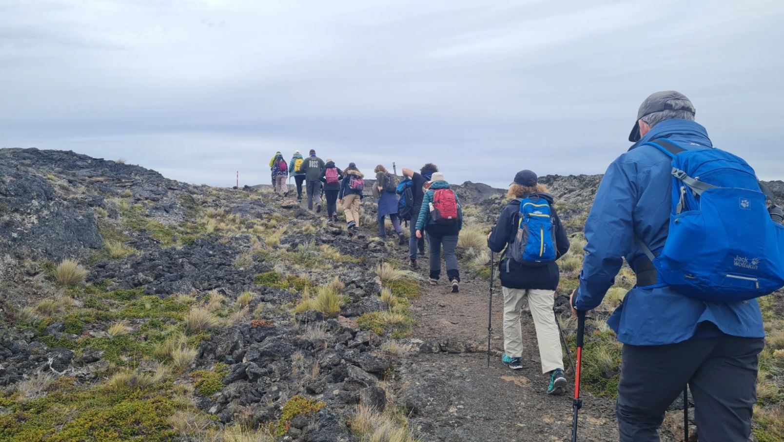 Trilha de dificuldade média no Parque Nacional Vulcões Pali Aike para descobrir vulcões, cavernas e vegetação semidesértica, como em uma paisagem lunar.