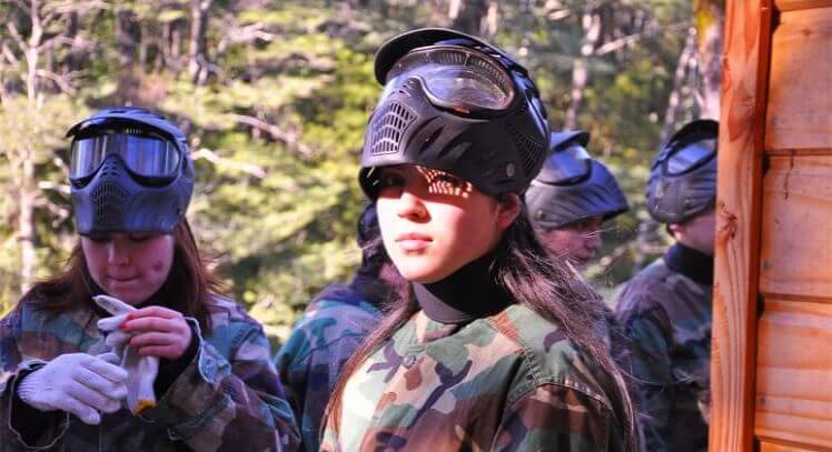 instructor bilingüe (español e inglés) y equipo de paintball.